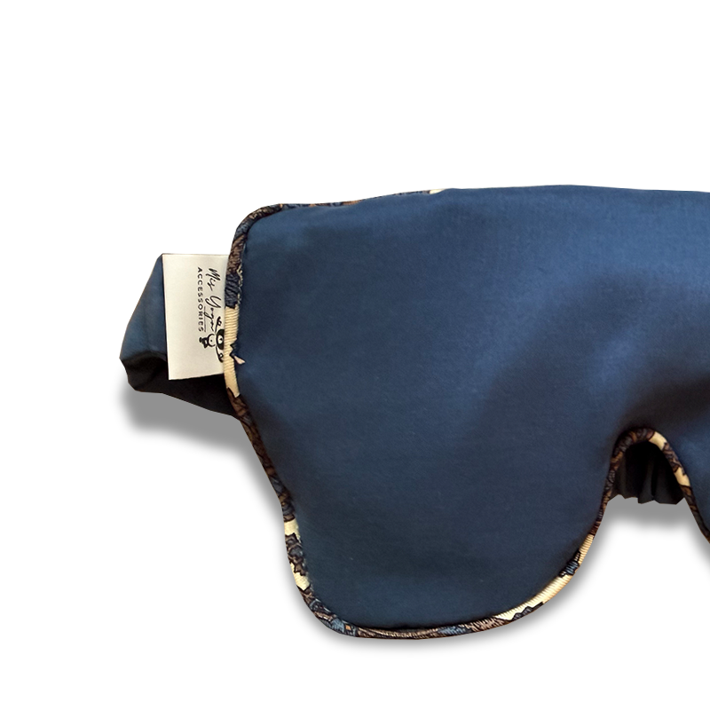 Jedwabna opaska na oczy z lawendą i bursztynami – niebieska pasley