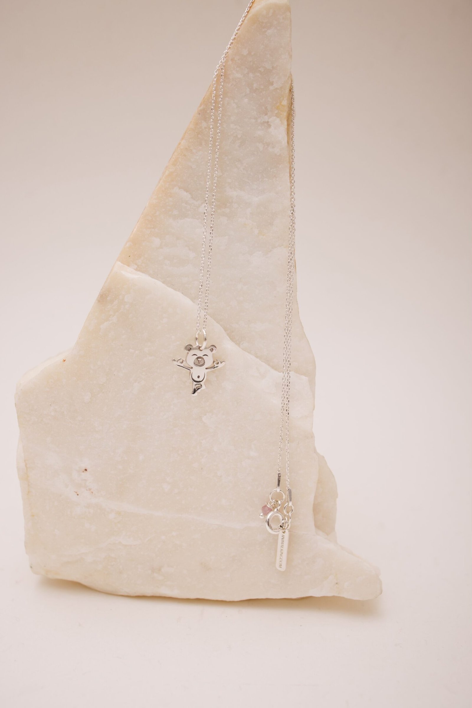 Minimalistyczny naszyjnik dopracowany w każdym szczególe w najbardziej uniwersalnym rozmiarze 45 cm z sylwetą misia.
